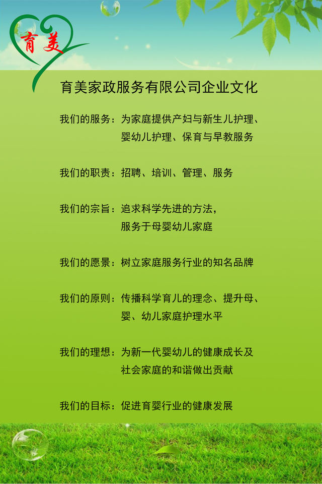 育美家政 專(zhuān)于婦嬰 來(lái)自華東 服務(wù)鄭州/育美家政服務(wù)有限公司是一家員工制管理(非中介)的公司。 主營(yíng)業(yè)務(wù):產(chǎn)婦護(hù)理和新生兒護(hù)理/0-3歲嬰幼兒護(hù)理/催乳按摩服務(wù)/月嫂和育嬰師培訓(xùn)/家庭育兒入戶(hù)指導(dǎo)